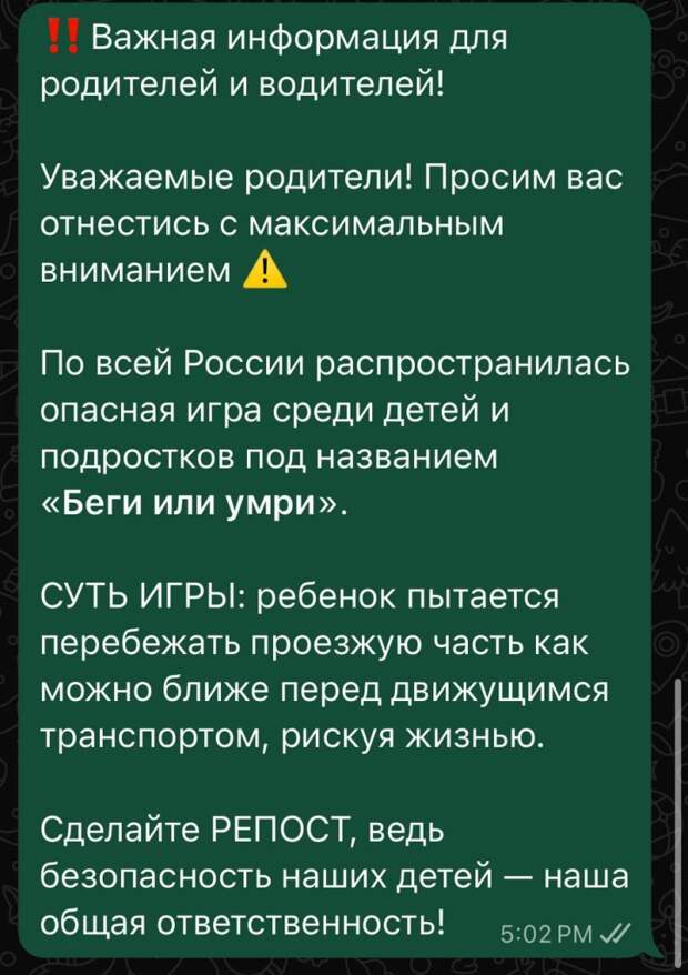 28 августа. /MEDIA TALK/. Летом 2025 года в российских городах вновь зафиксированы тревожные случаи рискованного поведения подростков. Камеры видеонаблюдения запечатлели, как дети намеренно выбегают перед движущимся транспортом, играя в опасный челлендж, известный как "Беги или умри". Родители и педагоги бьют тревогу - смертельная игра, появившаяся восемь лет назад, снова набирает популярность среди школьников. Суть этого опасного развлечения проста: участники должны максимально близко пробежать перед проезжающим автомобилем. Эксперты обращают внимание на циклический характер этой проблемы. Каждые несколько лет игра «Беги или умри» возвращается в подростковую среду, приобретая новые формы, а возраст участников становится всё младше. Надо отметить, что «вирусится» этот челлендж не только в России, но и в Беларуси, Казахстане и других государствах, где распространён русскоязычный контент.